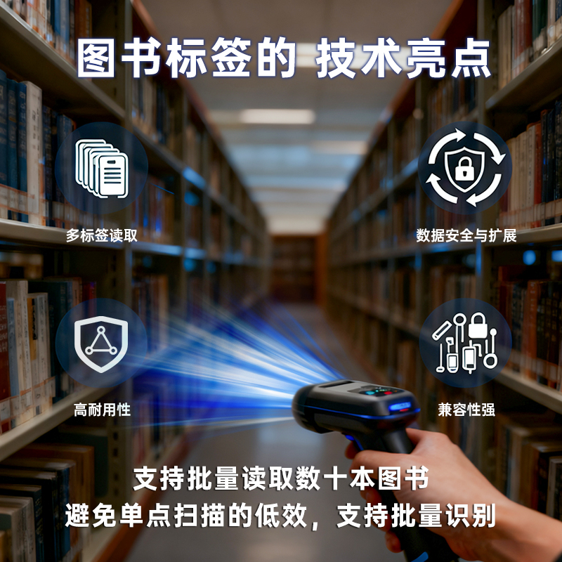 高效盘点:传统人工盘点需数周,现用移动读写器可快速完成全馆清点。